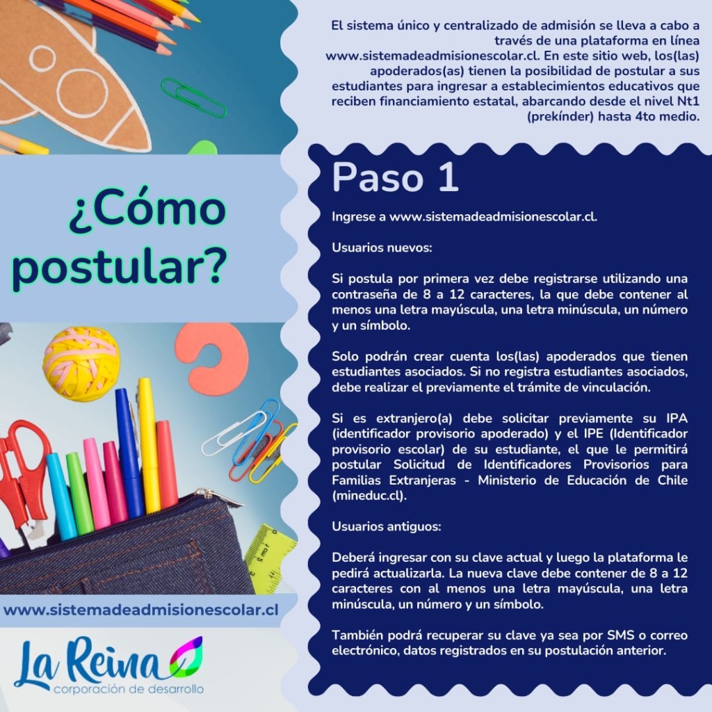 Para más información www.sistemadeadmisionescolar.cl